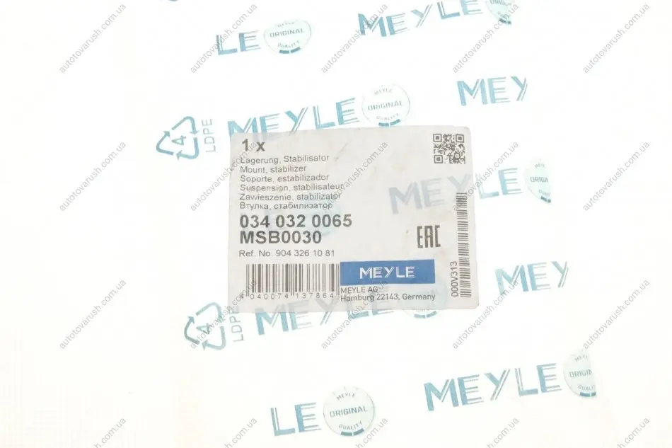 Meyle– відомий німецький бренд. Компанія була заснована в 1958 році, більш ніж за 60 років фірма пройшла шлях від простого експортера деталей до великої компанії зі своїми виробничими потужностями. Основне виробництво зосереджено у Китаї. Все робиться на німецькому устаткуванні під контролем німецьких інженерів. Головний офіс компанії знаходиться у місті Гамбург (Німеччина). Основний асортимент Meyle – деталі для Європейських марок авто: втулки, сайлентблоки, підшипники, стійки стабілізатора, амортизатори, демпфери, важелі, насоси, елементи кермового керування, деталі зчеплення. Преміум лінійка продукції cіндексом – HD(hard drive) позиціонується як відповідна якості оригіналу.