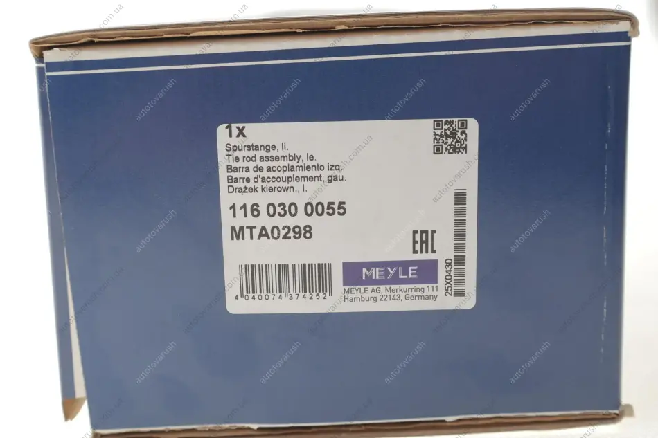 116 030 0055 MEYLE Тяга рульова (з наконечником) (L) Audi A3/Seat Toledo/Leon/VW Golf IV/Bora 96-06/Skoda Octavia 96-10