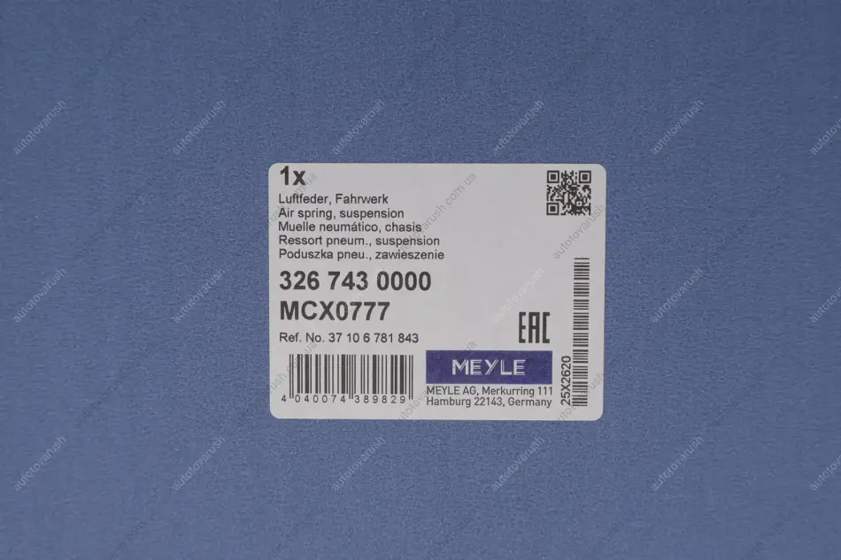 326 743 0000 MEYLE Подушка пневмопідвіски (ззаду) BMW 5 (F07/F11) 09-17