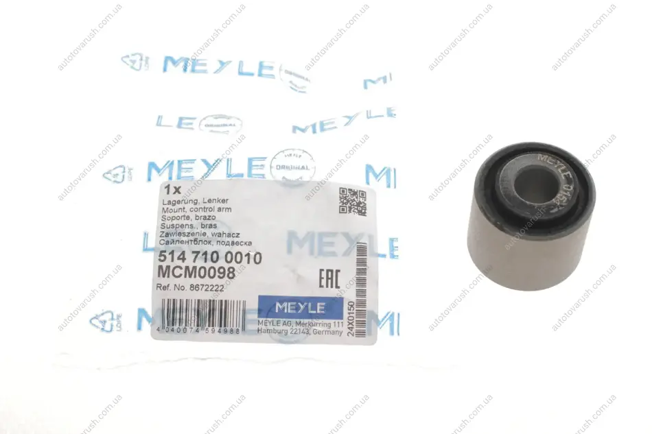 Meyle– відомий німецький бренд. Компанія була заснована в 1958 році, більш ніж за 60 років фірма пройшла шлях від простого експортера деталей до великої компанії зі своїми виробничими потужностями. Основне виробництво зосереджено у Китаї. Все робиться на німецькому устаткуванні під контролем німецьких інженерів. Головний офіс компанії знаходиться у місті Гамбург (Німеччина). Основний асортимент Meyle – деталі для Європейських марок авто: втулки, сайлентблоки, підшипники, стійки стабілізатора, амортизатори, демпфери, важелі, насоси, елементи кермового керування, деталі зчеплення. Преміум лінійка продукції cіндексом – HD(hard drive) позиціонується як відповідна якості оригіналу.