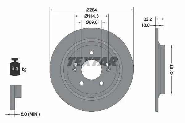 92316303 TEXTAR Диск гальмівний (задній) Hyundai Kona 17-/Kia Seltos 19- (284x10) PRO