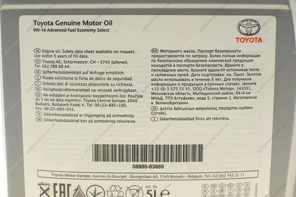 08880-83889 TOYOTA Олива 0W16 Motor Oil (5L) (Advanced Fuel Economy Select)
